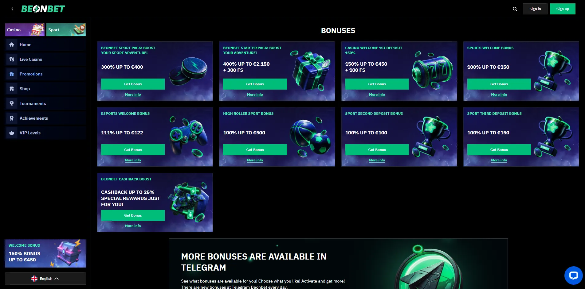 BeonBet hits you with multiple types of welcome bonuses, casino, sports, and esports.